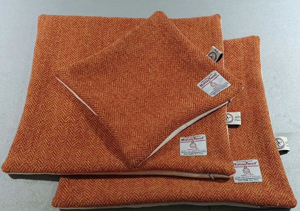 Harris Tweed orange and lemon square cushion with 100% linen backing and concealed zip